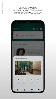 O morador dispara um evento de acompanhamento de sua chegada ao condomínio. A central faz o acompanhamento de sua chegada pelas câmeras e por um mapa, tudo em tempo real.