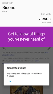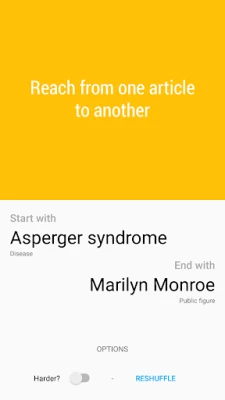 You get two Wikipedia articles. Your goal is simple; Reach from one to another, by clicking the hyperlinks in the article.